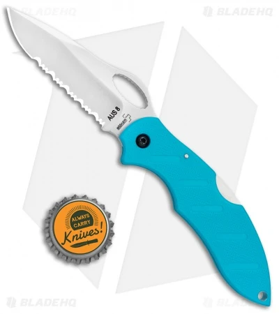 The Boker Plus Action R is offers a versatile and affordable everday carry design. This model has a satin finished AUS-8 stainless steel blade with a partially serrated cutting edge. Its handle is made from turquoise G-10 with a grip-enhancing texture for secure use. The knife comes equipped with a safety backlock system and a stainless steel clip for comfortable pocket carry.